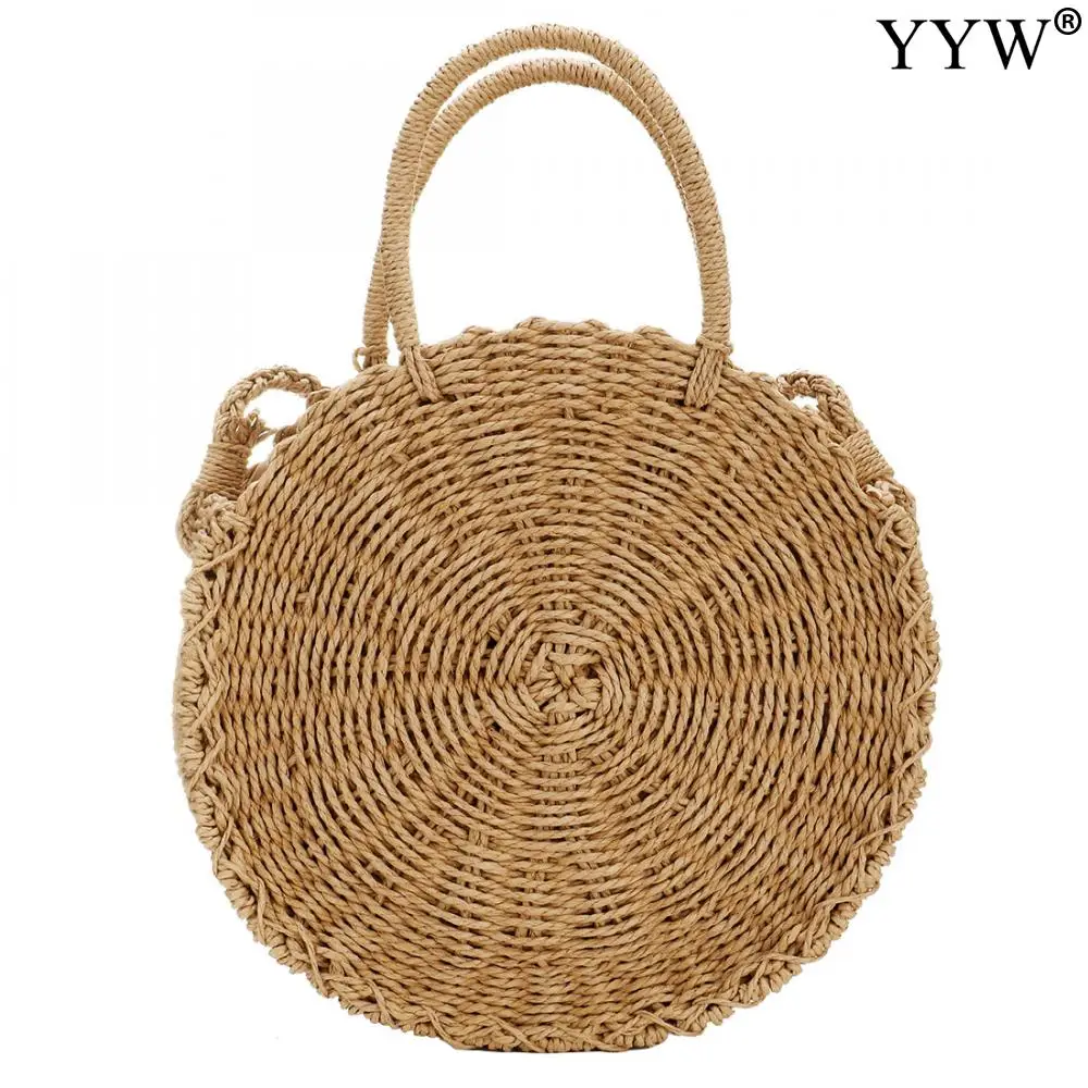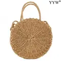 Best 2021 Summer Round Straw Bags For Women Ladies Rattan Shoulder Bag Handmade Woven Beach Handbags Female Message Handbag Totes Bag and You will save 28% or US $13.76 today