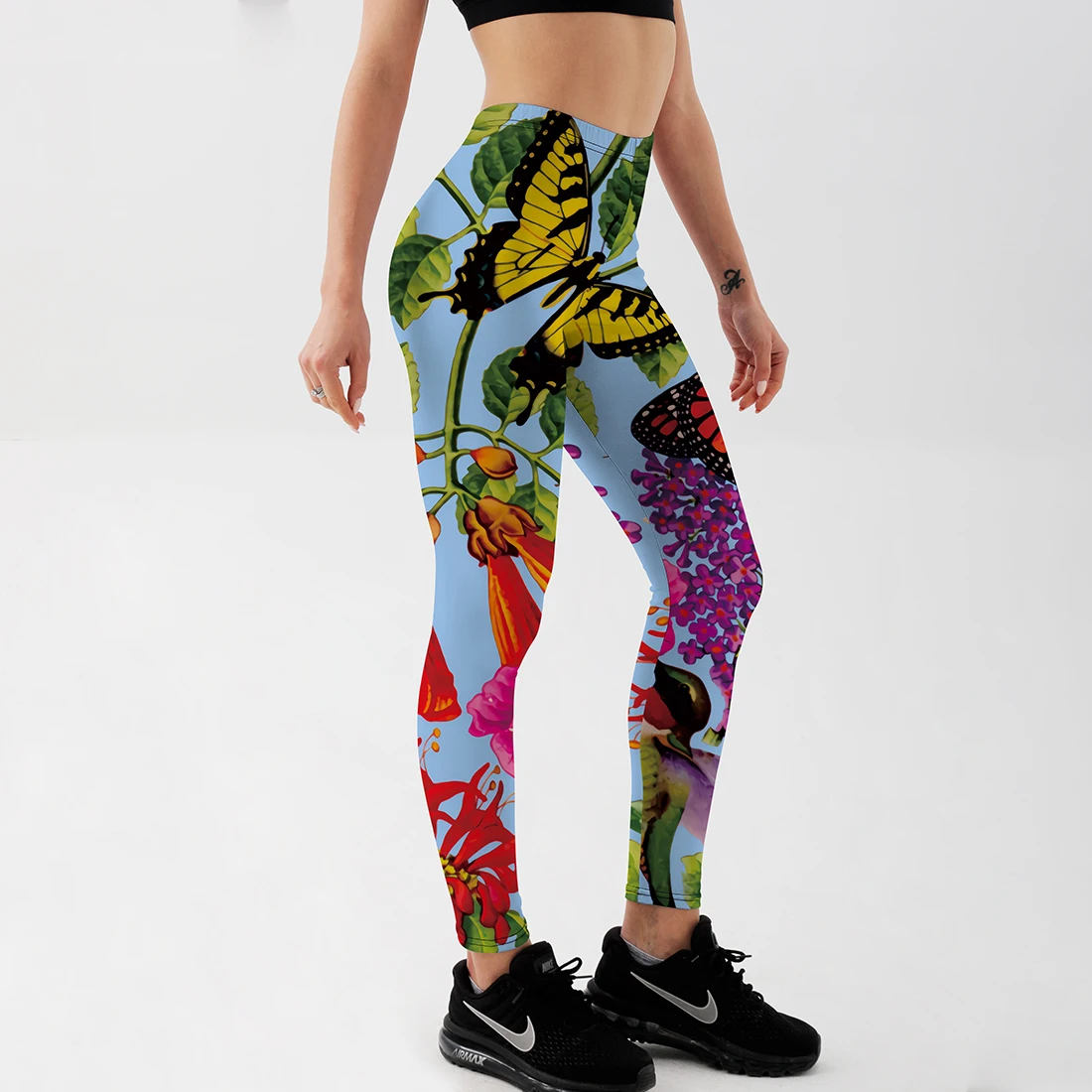 Best Hot Sell Women's Spring butterfly flowers Leggings Digital Print Pants Trousers Stretch workout Pants and You will save 50% or US $9.09 today