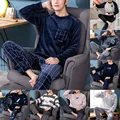 Best 2021 Winter Long Sleeve Thick Warm Flannel Pajama Sets for Men Coral Velvet Sleepwear Suit Pyjamas Lounge Homewear Home Clothes and You will save 50% or US $15.1 today