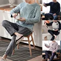 Costomer Scores and Reviews for 2021 Winter Long Sleeve Thick Warm Flannel Pajama Sets for Men Coral Velvet Sleepwear Suit Pyjamas Lounge Homewear Home Clothes